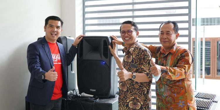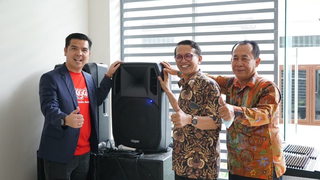 TASLABNEWS, SIANTAR – Komisaris Waskita Realty, Bane Raja Manalu menyumbangkan seperangkat sound system kapasistas 7.000 watt kepada Universitas HKBP Nommensen Pematangsiantar, Jumat (22/4/2022). Sumbangan tersebut diterima langsung Rektor Universitas HKBP Nommensen, Prof Sanggam Siahaan didampingi Wakil Rektor, Dr Muktar Panjaitan dan Sekretaris Yayasan, Dr Hilman Pardede.