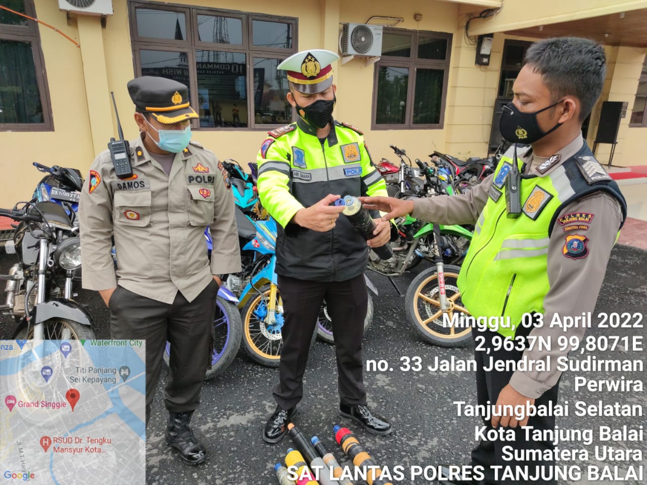 Kabag Ops, Kompol Damos C. Aritonang dalam keterangannya mengatakan, kegiatan tersebut dilaksanakan dalam rangka memberikan ketentraman dan kenyamanan kepada warga dalam menjalankan ibadah puasa dengan mencegah adanya aksi Sahur on the Road (SOR) seperti balapan liar, pengendara yang ugal ugalan memakai knalpot brong, mencegah terjadinya kecelakaan sekaligus menghimbau warga agar disiplin melaksanakan Protokol Kesehatan guna memutus mata rantai penyebaran Covid-19 di Kota Tanjungbalai. Aritonang juga menginformasikan, bahwa dalam kegiatan yang dilaksanakan pada hari Minggu (3/4) subuh itu, selaim melakukan patroli dan pengaturan arus lalu lintas, juga telah diamankan sebanyak 33 unit sepeda motor dengan knalpot brong dan ugal-ugalan serta 10 batang mercon yang terbuat dari pipa paralon.