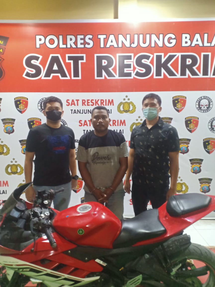Menurut AKP Eri Prasetyo,SH, penangkapan terhadap tersangka tersebut dilakukannya bersama dengan Kanit idik I Ipda DJH Manullang dan Kanit Idik II Ipda M Reza Fahrurozi,S.Trk beserta unit Opersional Sat Reskrim Polres Tanjungbalai. Katanya, tersangka ditangkap dari rumahnya yang ada Jalan Husni Tamrin, Kelurahan Pahang, Kecamatan Datuk Bandar, Kota Tanjungbalai berikut dengan barang buktinya berupa 1 (satu) unit sepeda motor Yamaha R-15 BK 5209 OAD milik korban.