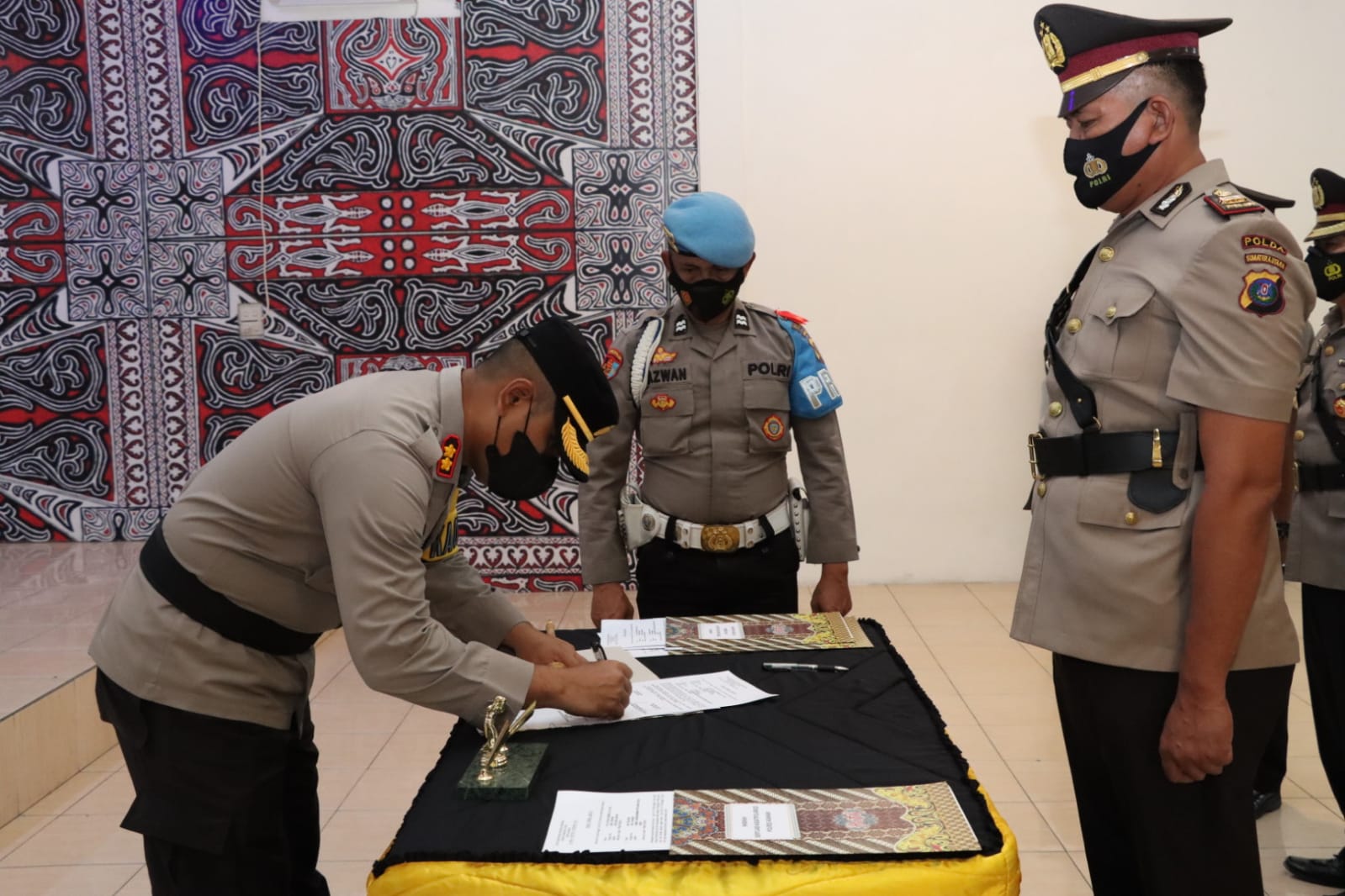 Adapun pejabat yang di serah terimakan adalah Kabag SDM dari penjabat lama Kompol Ady Santri Sanjaya S.SOS kepada pejabat baru