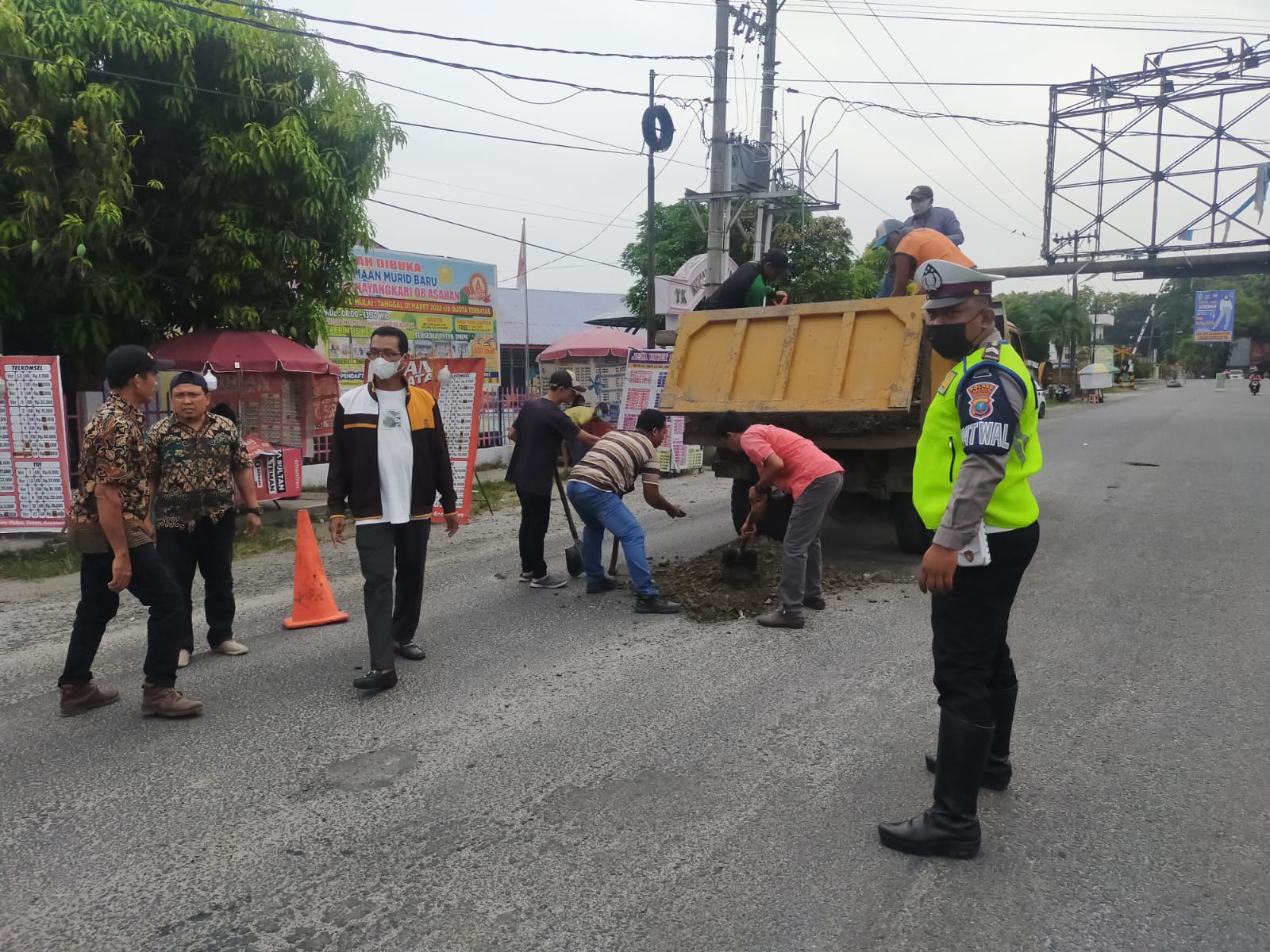 TASLABNEWS, ASAHAN-Personel Sat Lantas Polres Asahan melaksanakan kegiatan Survey Perbaikan Jalan Rusak / Berlubang di Jalan Lintas Provinsi, pada Jalan Ir. H. Juanda Kel. Lestari dan Kel. Gambir Baru Kec. Kisaran Timur Kab. Asahan, Jumat (22/4/2022).