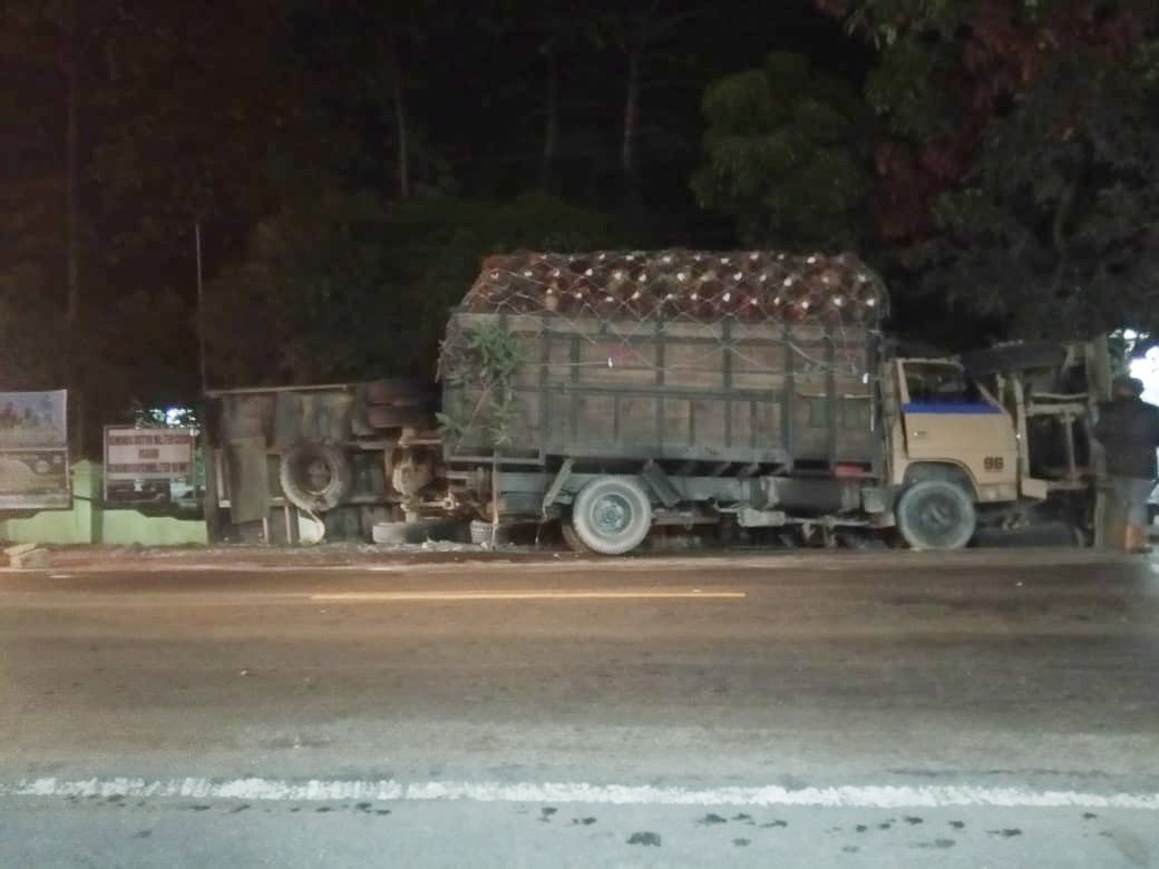 “Karena mendadak, saya pijak rem tapi karena tak sempat, saya buang ke kiri dan menghantam tronton lalu truk yang saya bawa terbalik,” ucapnya.
