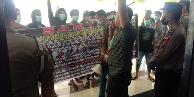 “Selain menyalahi segala bentuk prosedur dalam menjalankan aktivitas nya tentunya sangat sangat minim pengawasan dari instansi terkait sehingga sangat rentan terjadinya penyelundupan ” kata juru bicara aksi, Mahmudin sp