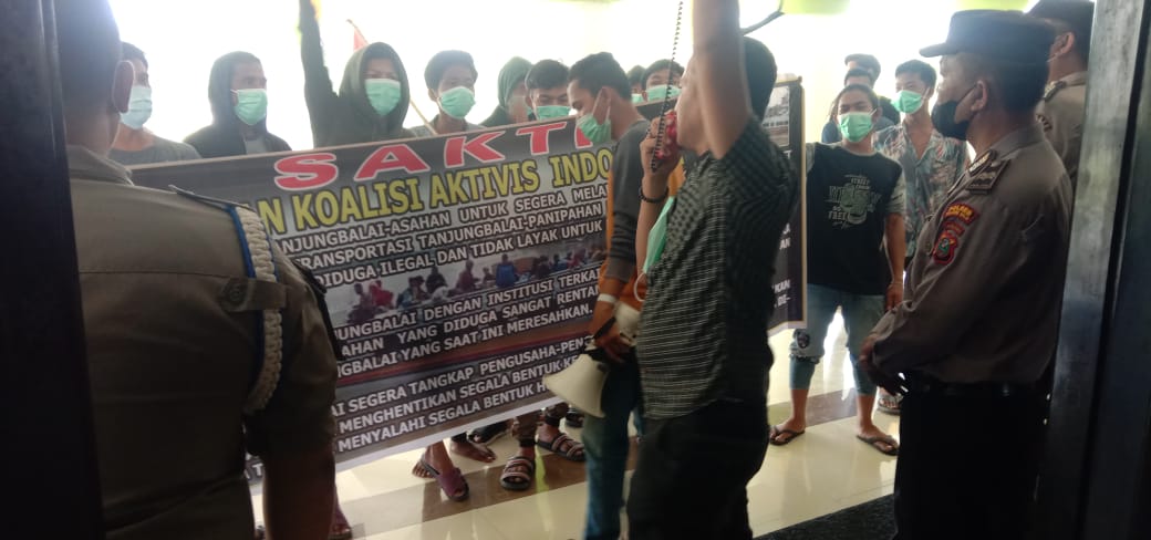 Demonstran mendesak Plt. Walikota Tanjungbalai dan pihak KSOP segera menyegel tangkahan tersebut dikerenakan tidak sesuai dengan peraturan menteri Perhubungan no 37 tahun 2015 tentang standar pelayanan penumpang angkutan laut maupun persyaratan Undang-undang Nomor 17 Tahun 2008 tentang pelayaran dalam menjalankan aktivitas usaha tranportasi laut dari tanjungbalai ke Panipahan.