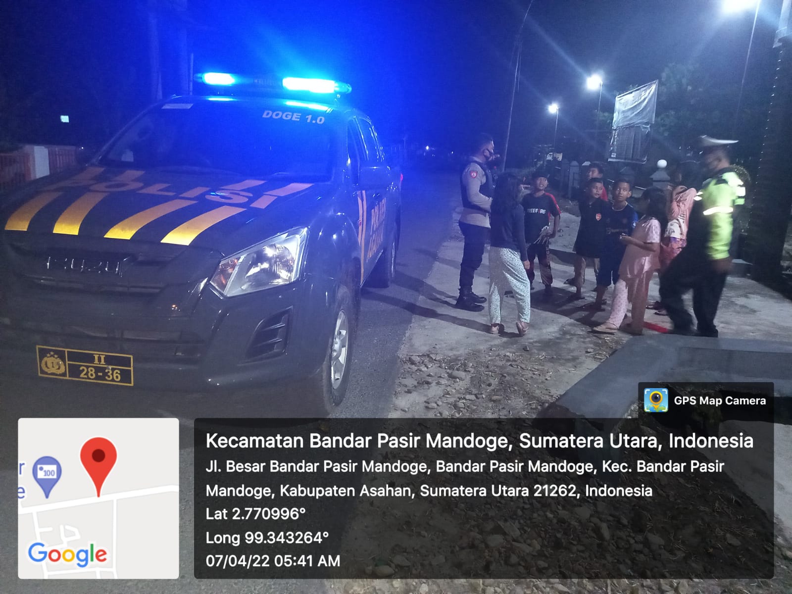TASLABNEWS, ASAHAN-Personel Polsek Bandar Pasir Mandoge, Polres Asahan melaksanakan patroli asmara subuh, Kamis (07/4/2022).