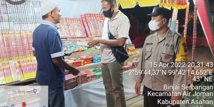 TASLABNEWS, ASAHAN- Polsek Air Joman Polres Asahan melaksanakan penertiban penjual kembang api yang di perkirakan menjual petasan sekaligus menindaklanjuti laporan masyarakat tentang adanya judi jenis Togel / Kim di wilayah hukum Polsek Air Joman, Jumat (15/4/2022).