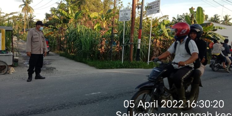 TASLABNEWS, ASAHAN,- Personel Polsek Sei Kepayang Polres Asahan melaksanakan pengamanan dan pengaturan lalu lintas sore di setiap persimpangan, Selasa (05/3/2022).