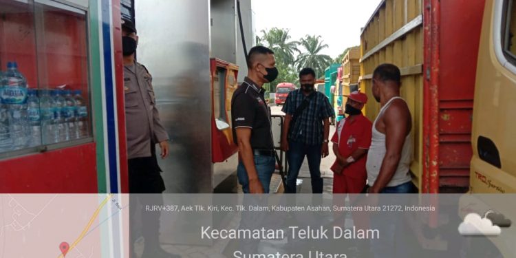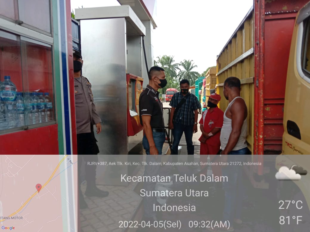 Kegiatan monitoring yang dipimpin Iptu IJ. Rumahomba bersama personel Aiptu Julfiandi dan Briptu Anju Saragih menyambangi 2 lokasi SPBU yang diantaranya SPBU Air Teluk Kiri di Jln. Lintas Sumatera Dusun III Desa Air Teluk Kiri, Kec. Teluk Dalam dan SPBU Pulau Maria di Jln. Lintas Sumatera Dusun IV Desa Pulau Maria Kec. Teluk Dalam Kab. Asahan.