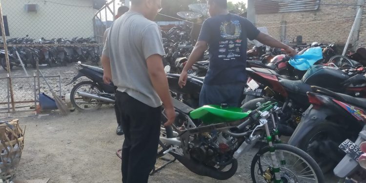Selanjutnya 1 Sepeda Motor jenis Kawasaki Ninja tersebut diamankan Personil Sat Lantas untuk proses pendataan.