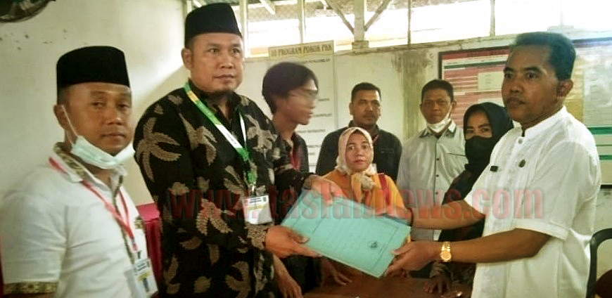 Didampingi istri dan pendukung, Suyatno 49, warga Dusun 4, Desa Sei Beluru, Kecamatan Meranti, Asahan, kembali mendaftarkan diri menjadi bakal calon (balon) Kades untuk periode yang kedua. Rabu (25/05/2022) pukul 10.30 WIB.