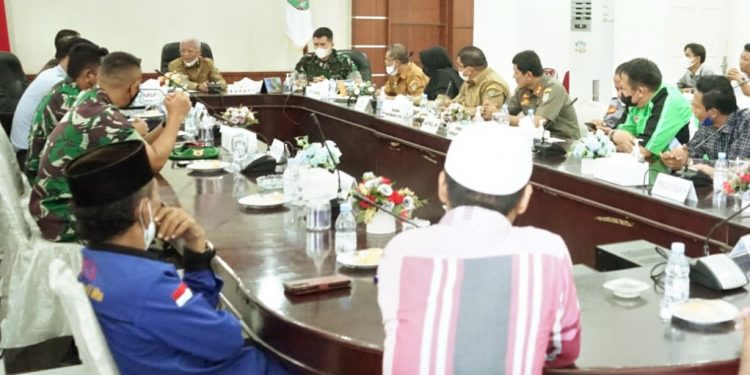 TASLABNEWS, ASAHAN – Bupati Asahan H. Surya, BSc didampingi Dandim 0208/Asahan, Kapolres Asahan, Kajari Asahan, Ketua PN Kisaran, Danlanal TBA, Danyon 126/KC menerima audiensi Asosiasi Buruh Kabupaten Asahan di Aula Mawar Kantor Bupati Asahan, Selasa (10/05/2022).