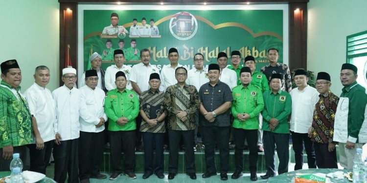 TASLABNEWS, ASAHAN – Bupati Asahan, H Surya BSc bersama Wakil Bupati Asahan Taufik Zainal Abidin Siregar SSos MSi menghadiri Halal Bilhalal Akbar Partai Persatuan Pembangunan (PPP) Kabupaten Asahan, di Aula Kantor Dewan Pimpinan Cabang (DPC) PPP Kabupaten Asahan, Jum’at (27/05/2022).