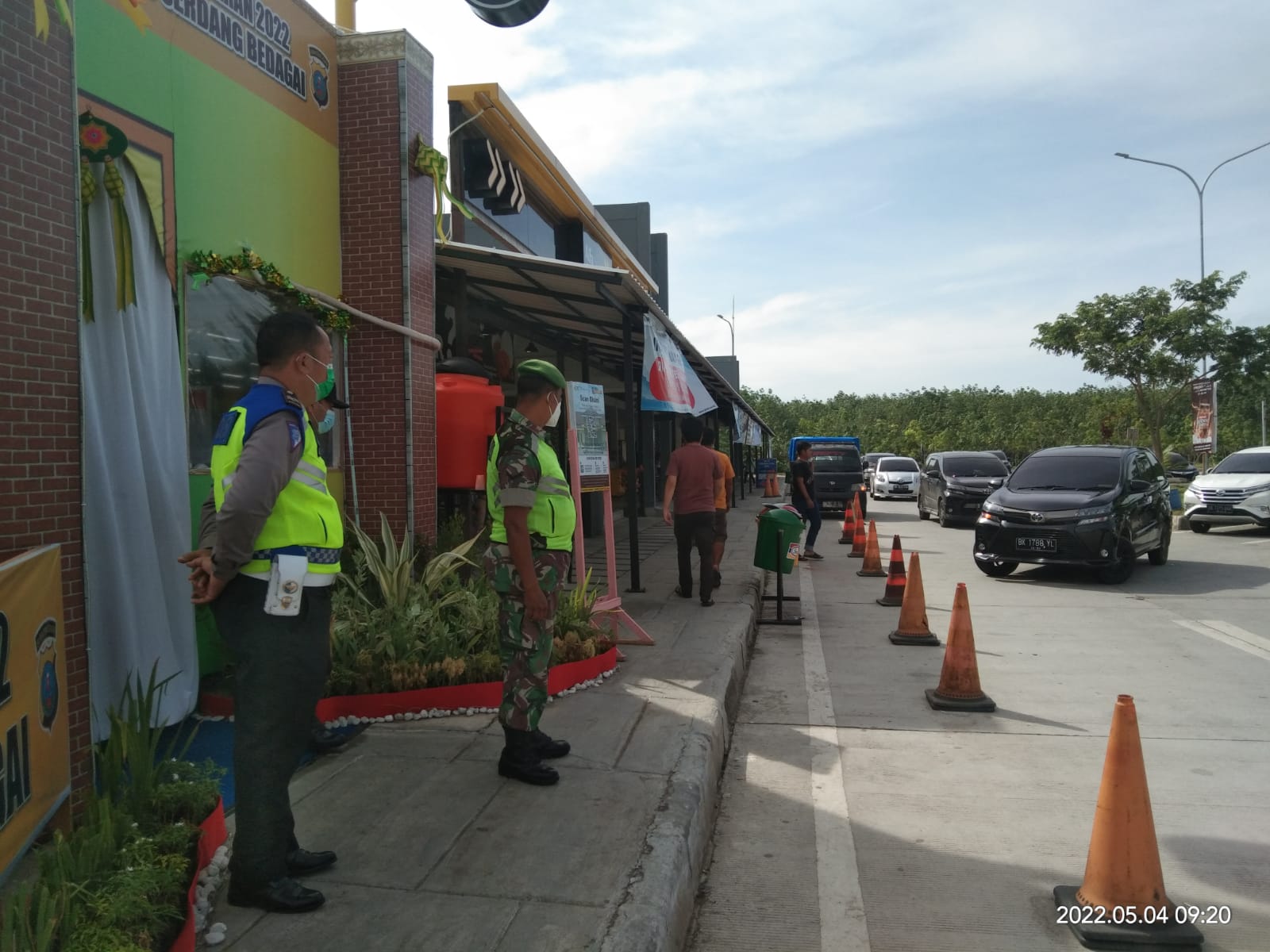 TASLABNEWS, SERGAI – Seraya melakukan pengamanan di Rest Area Tol Tebing Tinggi – Medan, Kanit Laka Lantas Polres Serdang Bedagai (Sergai), IPDA Helmi juga mengimbau para pemudik mengikuti vaksinasi Covid-19.
