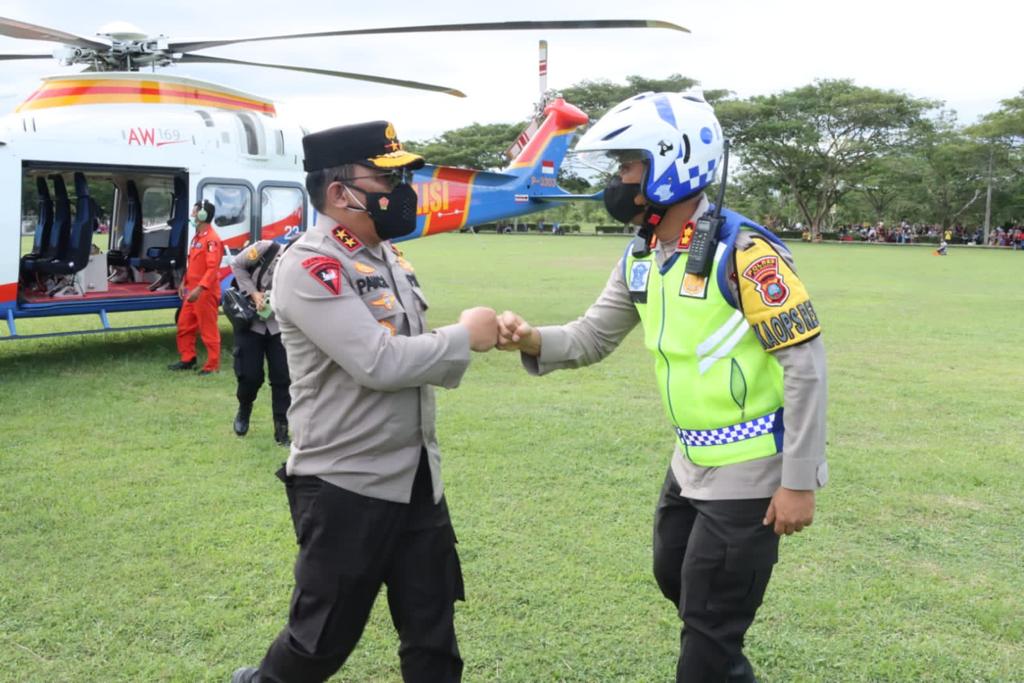 Setelah memantau situasi Jalinsum dari udara, Kapolda Sumut beserta rombongan mendarat di Alun-Alun Kisaran, Kabupaten Asahan untuk mantau melalui darat