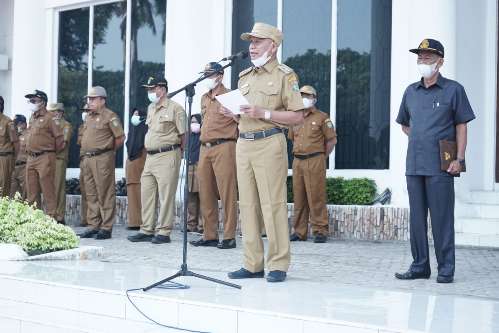 Bupati kembali menekankan agar ASN di Lingkungan Pemerintah Kabupaten Asahan menjadikan setiap pelaksanaan apel Gabungan sebagai momen untuk meningkatkan pelayanan maksimal kepada Masyarakat.