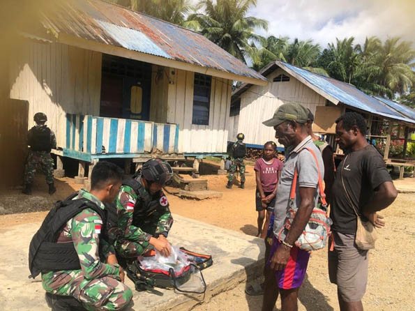 TASLABNEWS, PAPUA – Tim kesehatan Satgas Pamtas Yonif 126/KC Pos Yabanda memberikan pelayanan kesehatan berupa pengobatan gratis secara keliling Kampung binaan Yabanda Distrik Waris Kabupaten Pegunungan Keerom.