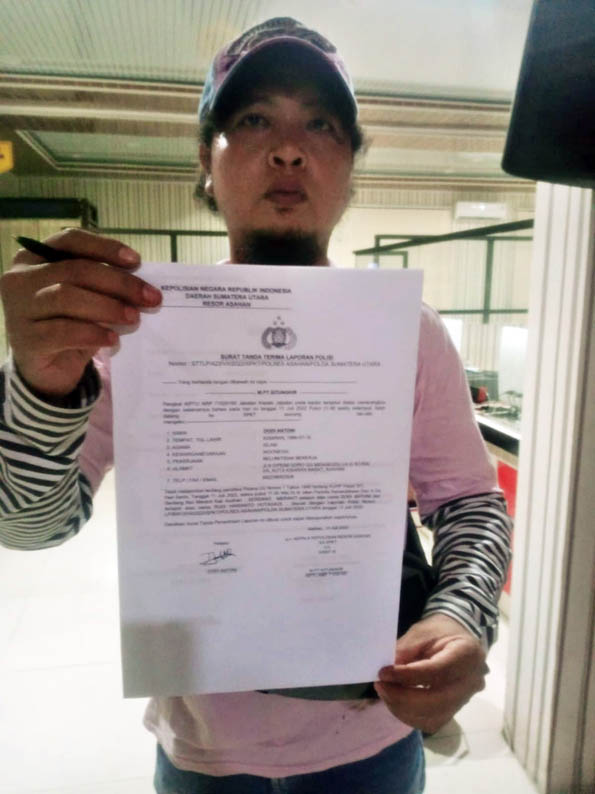 Atas penganiayaan tersebut, Dodi membuat pengaduan terjadinya tindak pidana penganiayaan ke Polres Asahan, dibuktikan dengan surat laporan nomor STTLP/423/VII/2022/SPKT/Polres Asahan/Polda Sumut.