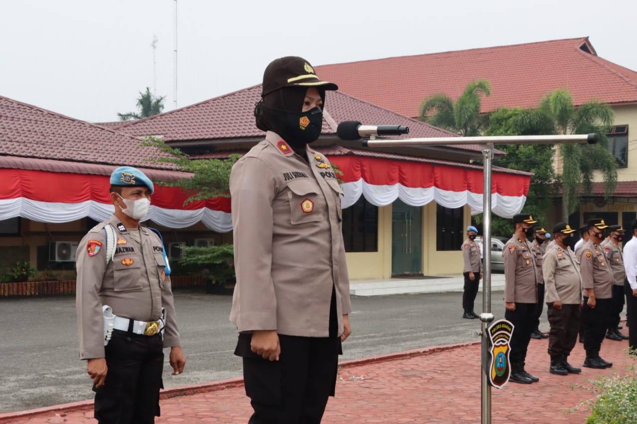 TASLABNEWS, ASAHAN- Mewakili Kapolres Asahan AKBP Putu Yudha Prawira SIK MH, Wakapolres Kompol Sri Juliani Siregar SH pimpin apel personel, Senin (18/7/2022). Dalam apel ini dilakukan pembagian bubur kacang hijau dan Vitamin kepada seluruh Peserta Apel dengan maksud untuk meningkatkan imun tubuh Personel dalam menghadapi Wabah Covid – 19.