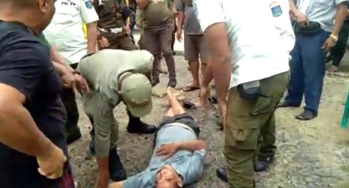 Akibat ketegangan yang terjadi tersebut, Pemilik Tangkahan Perikanan UD Budi Jaya, Kartono (85) terjatuh dan tergeletak di tanah, diantara kerumunan massa dan Satpol PP Pemko Sibolga. Menurut pengakuan Kartono, ia terjatuh akibat terjadinya dorongan.