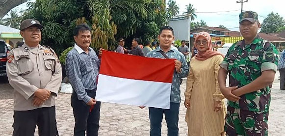 Di akhir kegiatan Camat Meranti, Kaposyan Meranti, Danramil 18 Meranti dan kepala desa se kecamatan Meranti membagikan Bendera Merah Putih kepada Masyarakat Kecamatan Meranti. (edi/mom)