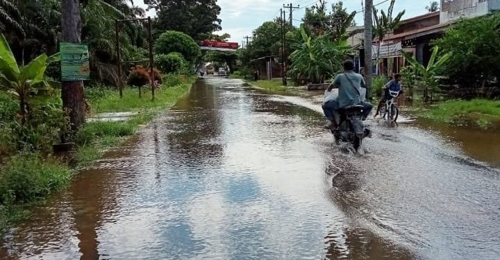 TASLABNEWS, ASAHAN-Hujan yang deras menjelang pagi hari Kamis (18/8/2022) membuat sebagian jalan dan pekarangan rumah di Desa Sei Beluru, Kecamatan Meranti, Kabupaten Asahan, Sumatera Utara tergenang air. Ketinggian air melebihi mata kaki orang dewasa.