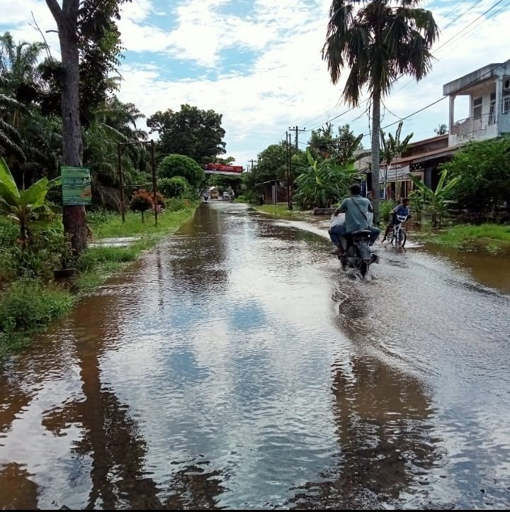 Dari keterangan seorang warga bernama Wagiman warga Desa Sei Beluru, hujan yang mengguyur membuat sebagian jalan protokol kecamatan tergenang air.