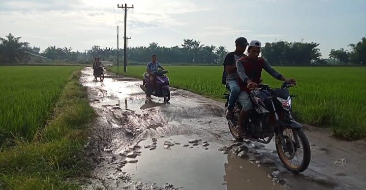 ” Kawasan ini lumbung padi, jadi semua hasil panen padi pasti lewat sini, percuma kami membayar pajak sementara pasilitas untuk jalan yang selalu mengangkut hasil panen hancur,” terang Silaen. (Edi/Syaf)