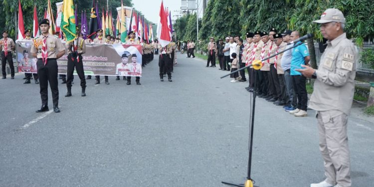 TASLABNEWS, ASAHAN- Ketua Majelis Pembimbing Cabang (Mabicab) Gerakan Pramuka Asahan sekaligus Bupati Asahan melepas Kirab Tangkal Napza Kwartil Dawrah Gerakan Pramuka Sumut Tahun 2022 dari Kabupaten Asahan.