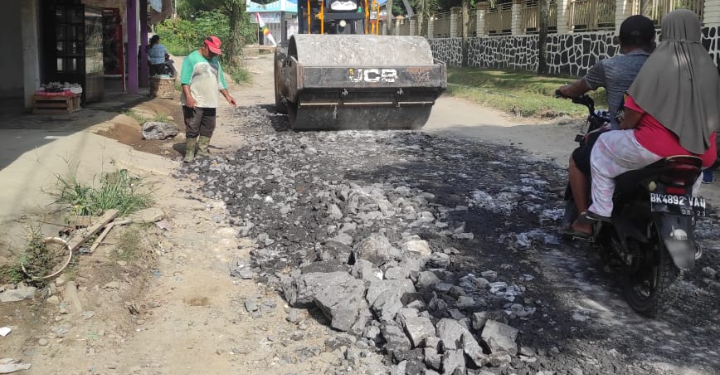TASLABNEWS, ASAHAN- Manajemen PTPN III Kebun Karya Ambalutu dan Huta Padang Asahan sosialisasikan perbaikan jalan rusak di sekitaran Desa Sombahuta Parapat Janji.