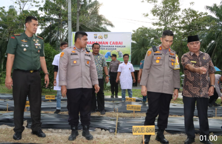 Dalam sambutannya Kapolres Asahan AKBP Roman Smaradhana Elhaj SH SIK MH mengucapkan terima kasih kepada Pemkab Asahan yang telah memberi sebanyak 5.000 bibit cabe kepada Polres Asahan untuk dibagikan ke Polsek Jajaran Polres Asahan dalam rangka ketahanan pangan guna antisipasi insplasi di Kabupaten Asahan.