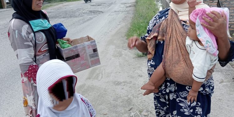 Dari pantauan awak media, tampak ke dua emak-emak yang membawa dua orang anak di bawa umur mendatangi satu per satu rumah warga minta sedekah di Dusun 3, Desa Meranti, Kecamatan Meranti. (Edi/Syaf)