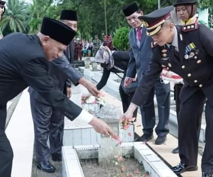Setelah usai melaksanakan upacara Hari Pahlawan ke-77 Bupati Asahan melakukan ziarah makam ke Taman Makam Pahlawan bersama dengan Dandim 0208/Asahan, Danlanal TBA, Kapolres Asahan, Kajari Asahan dan Ketua PN Kisaran. (Edi/ril/Syaf)