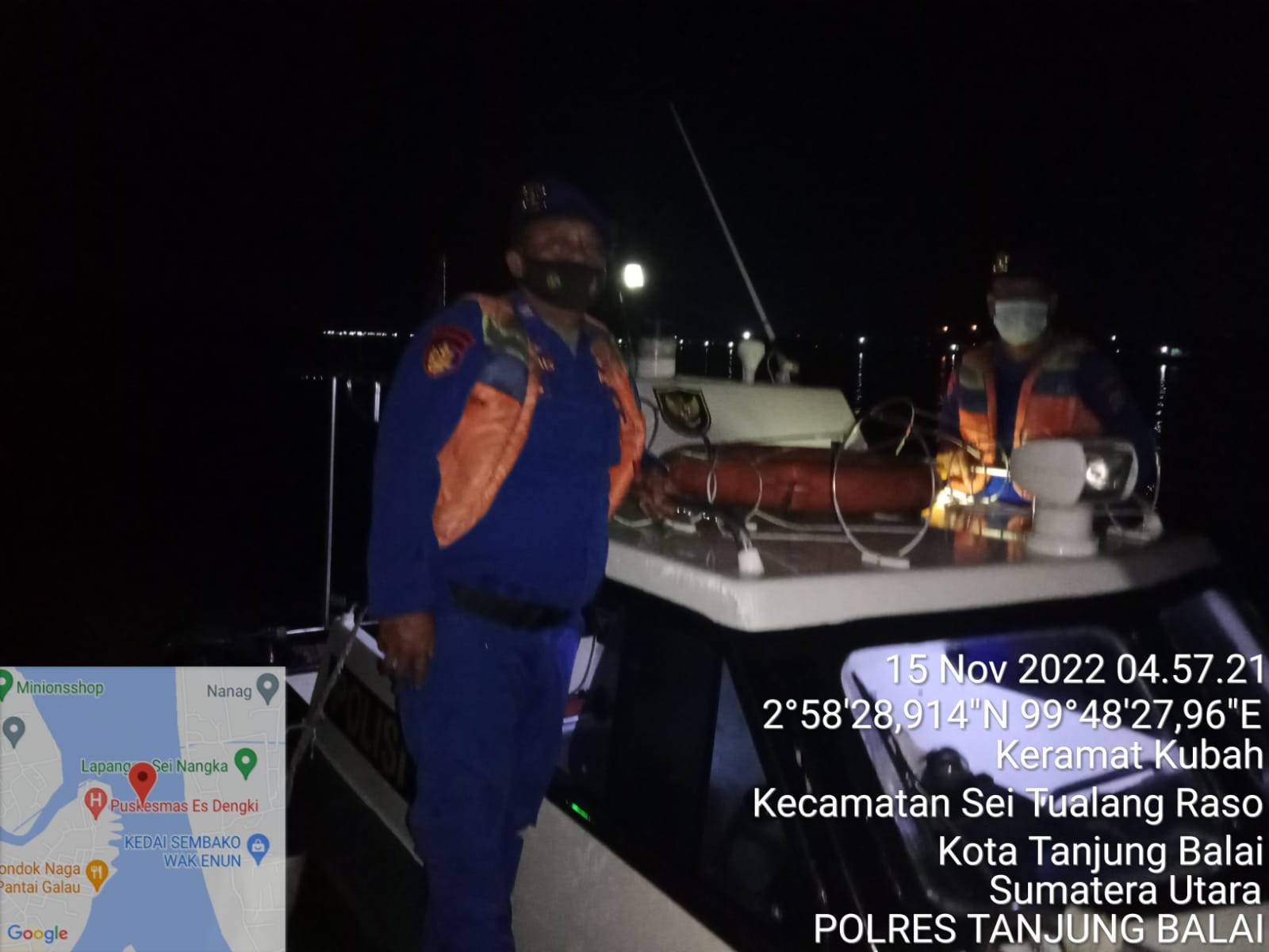 Dalam kegiatan patroli tersebut, persisnya sekira pukul 05.01 WIB, Sat Pol Airud mencurigai salah satu unit kapal yang datang dari arah laut menuju perairan Tanjungbalai dan langsung dilakukan pengejaran hingga kapal tersebut berhasil dihentikan di posisi/koordinat N=2° 58′ 30,888″, E=99° 48′ 28,824″. Selanjutnya dilakukan pemeriksaan terhadap kapal dan ditemukan bahwa kapal tersebut tidak memiliki nama maupun tanda selar.