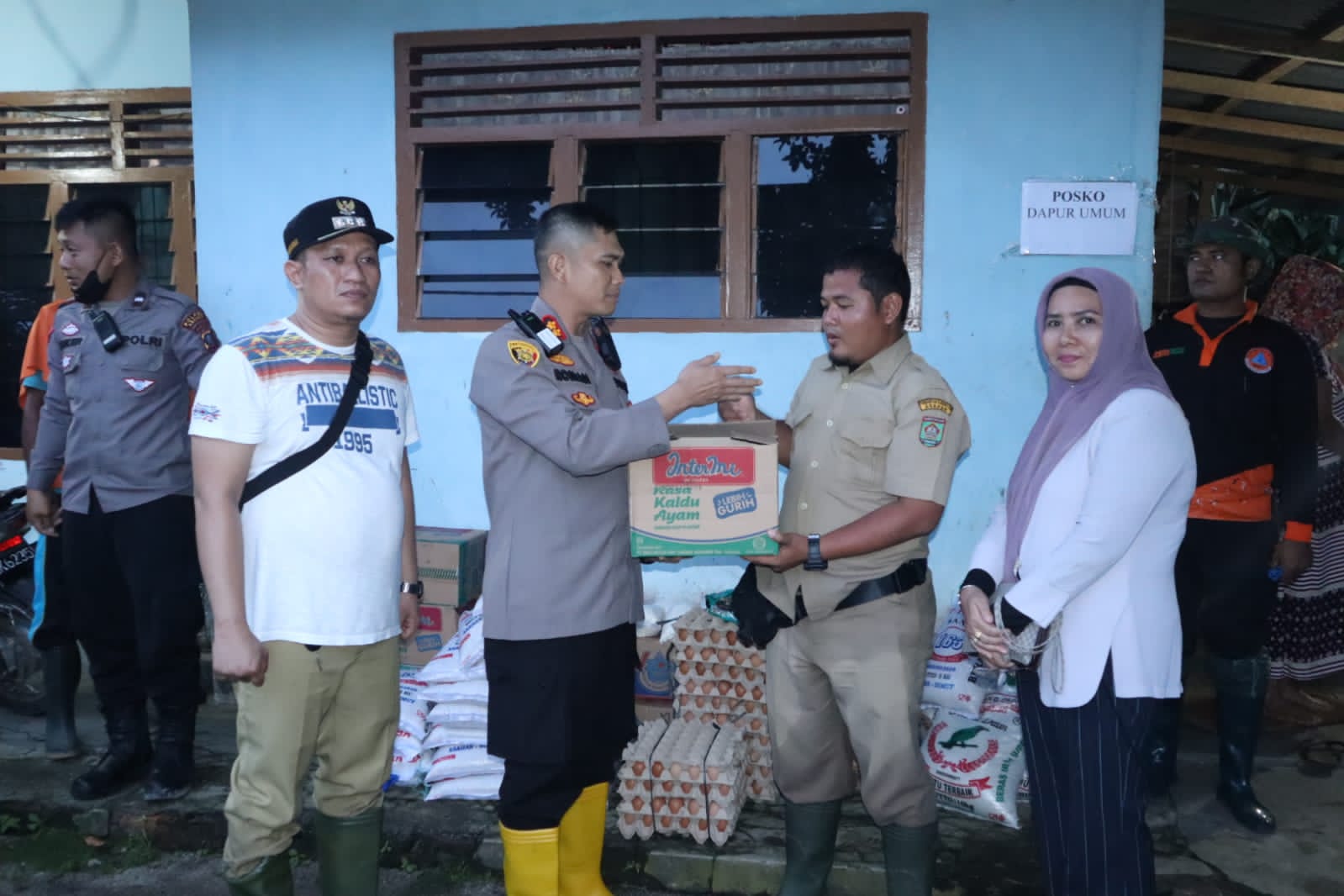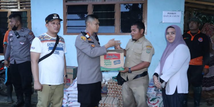 Selanjutnya Kapolres Asahan, Kapolsek Kota Kisaran bersama dengan Camat Pulo Bandring memberikan bantuan sembako kepada warga yang terkena dampak banjir dan juga menyerahkan bantuan sembako ke Posko Dapur Umum yang telah disediakan.