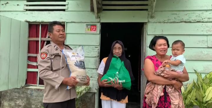 Kaposiyan Meranti Aiptu Islamuddin mengatakan, pihaknya menyalurkan bantuan sosial berupa beras kepada masyarakat yang membutuhkan dengan harapan dapat meringankan beban masyarakat.