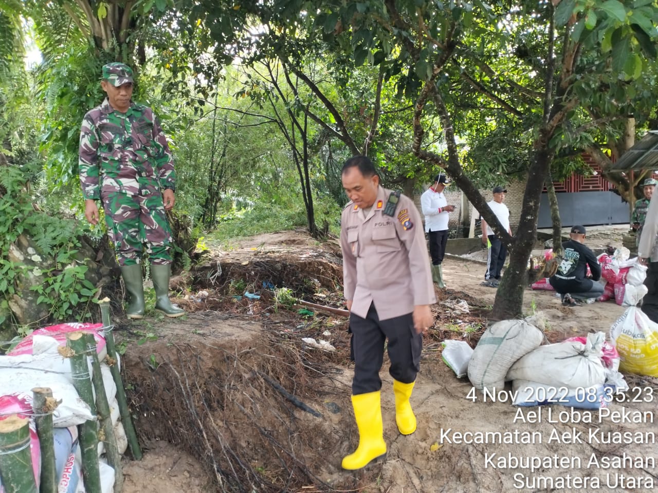 TASLABNEWS, ASAHAN- Guna mengantisipasi terjadinya banjir akibat meluapnya air sungai Aek Kuasan, Jumat (4/11-2022), Lurah Aek Loba Pekan Daniel Effendi Siagian, SE bergotong royong bersama warga di Dusun 1, Kelurahan Aek Loba Pekan, Kecamatan Aek Kuasan.