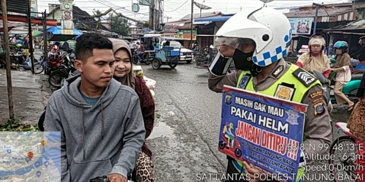 TASLABNEWS, TANJUNGBALAI – Walaupun sudah sering diingatkan namun masih banyak juga pengguna kenderaan bermotor roda dua dan roda tiga di Kota Tanjungbalai yang tidak menggunakan helm standart SNI.
