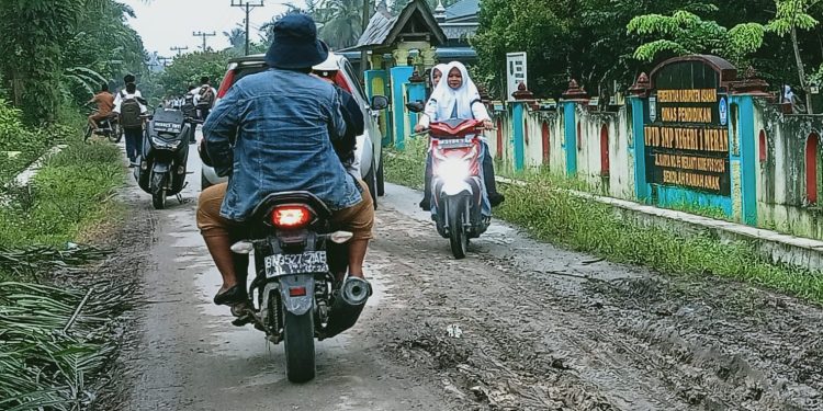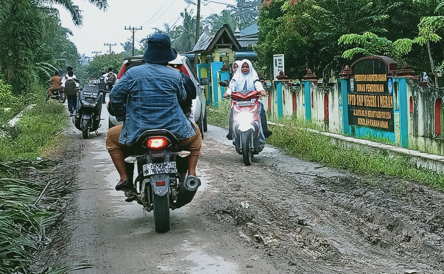 TASLABNEWS, ASAHAN-Warga Desa Meranti di Dusun 1 dan 2, Kecamatan Meranti, Kabupaten Asahan, Sumatera Utara menuding truk pengangkut material membuat jalan mereka yang tadinya mulus menjadi rusak.