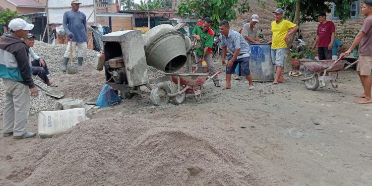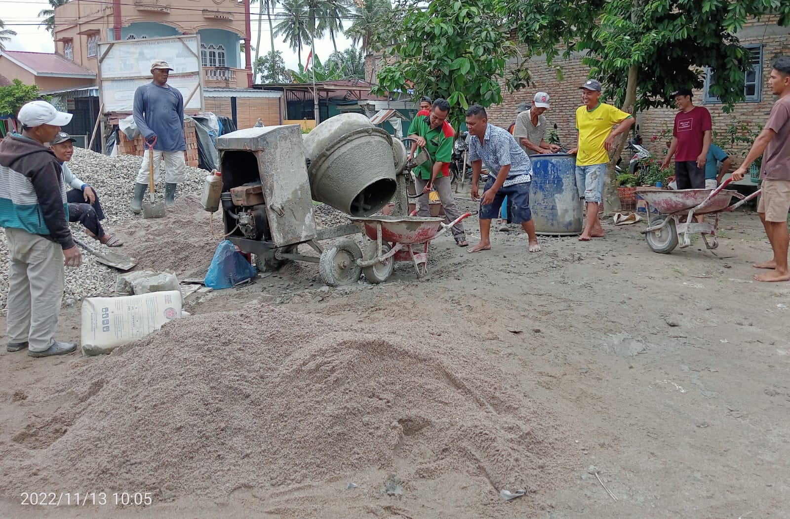 TASLABNEWS, ASAHAN-Warga Dusun 6, Desa Meranti, Kecamatan Meranti, Kabupaten Asahan, Sumatera Utara gotong royong membangun Masjid Silahturahmi, Minggu (13/11/2022).