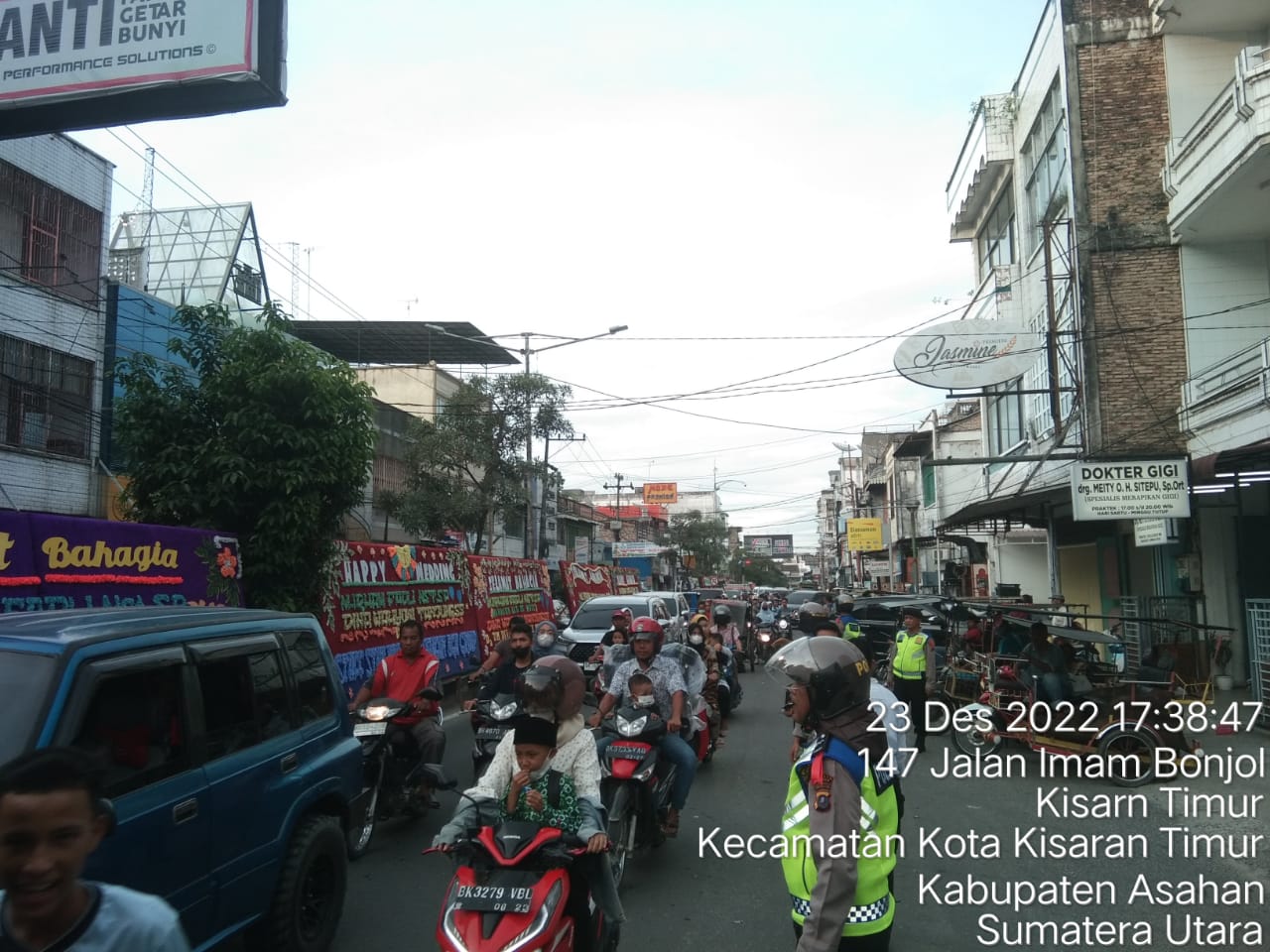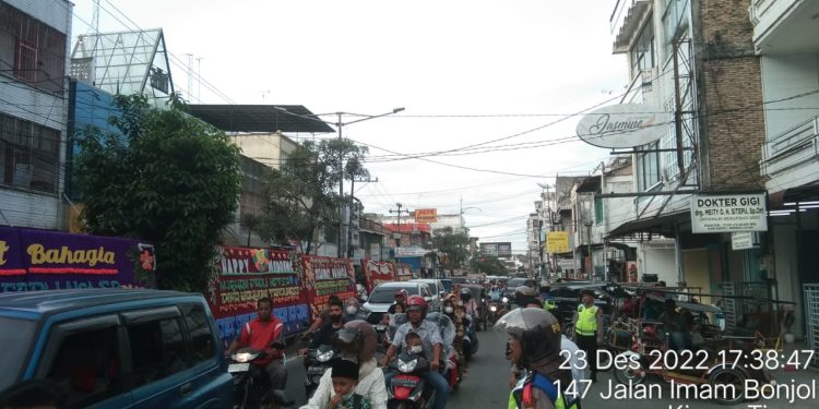 TASLABNEWS, ASAHAN-Menjelang Hari Natal dan Tahun Baru 2023P, personel Polres Asahan menyampaikan pesan-pesan Kamtibmas kepada pedagang di Pusat perbelanjaan Pasar Diponegoro Kota Kisaran, serta mengajak untuk turut aktif dalam menjaga sitkamtibmas yang aman dan kondusif, Jumat (23/12/2022) sekira jam 11.00 Wib.