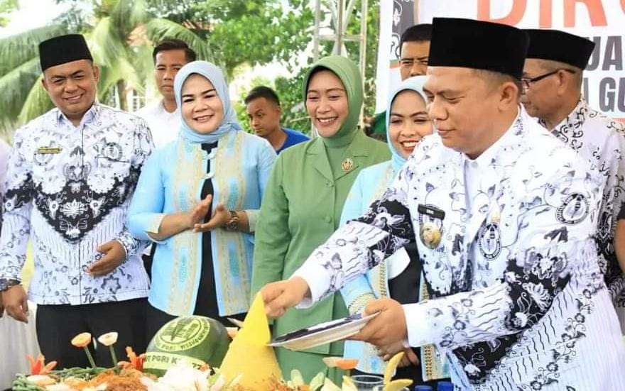 Dalam sambutannya, Bupati Erik Adtrada menyampaikan tidak ada anak bangsa yang tidak pernah diajari oleh para guru.