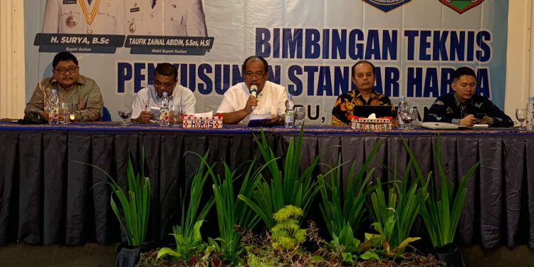 TASLABNEWS, ASAHAN – Wakil Bupati Asahan Taufik Zainal Abidin, S.Sos, M.Si buka Bimbingan Teknis (Bimtek) Penyusunan Standar Harga (SSH, SBU, HSPK, dan ASB) di lingkungan Pemerintah Kabupaten Asahan, Selasa (6/12/2022).