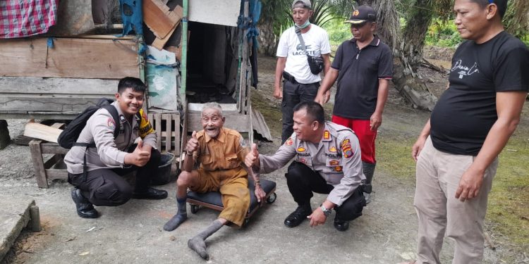 Sampai akhirnya, kabar tentang penderitaan dari kakek ini sampai kepada Kapolres Tanjungbalai AKBP Ahmad Yusuf Afandi,SIK,MM dan langsung terpanggil hatinya untuk membantu meringankan pebderitaan dari kakek ini dengan memberikan bantuan berupa kursi roda.