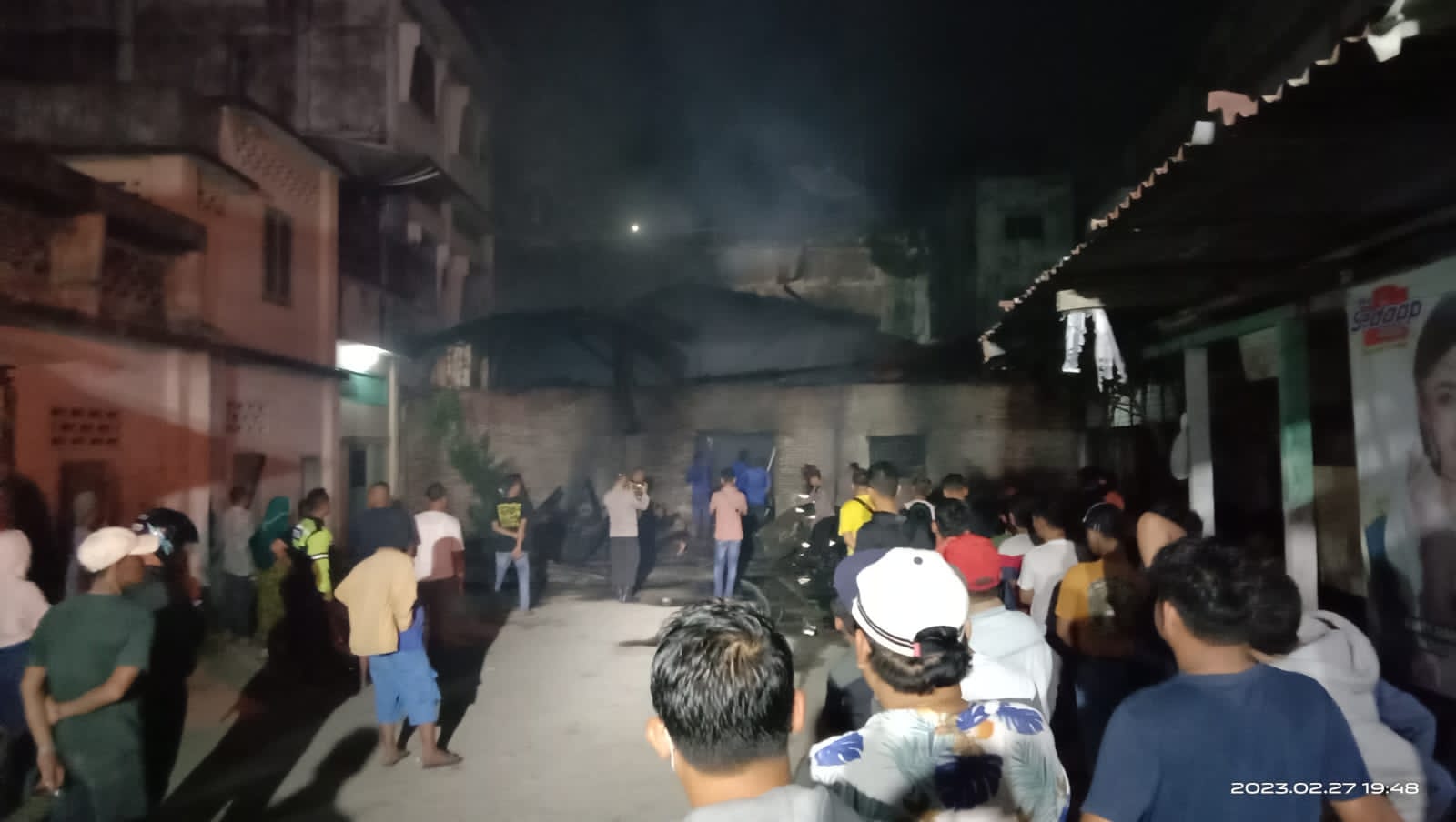 TASLABNEWS, ASAHAN-Wargs di Jalan Cipto, Kisaran heboh. Pasalnya rumah milik warga yang berisikan peralatan untuk membuat kue bakul dan ban bekas terbakar, Senin 27/2/2023 sekira pukul 18.50 WIB.