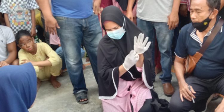 Melihat hal tersebut, Tumini (73) dan Suprapto (50) yang merupakan warga jalan Mangga berteriak meminta tolong dengan tetangga yang lain.