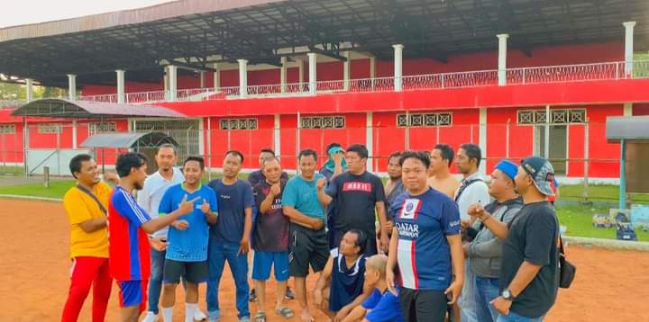 Tampak hadir dalam latihan manajer club sepak bola wartawan Asahan FC Heru Sihotang, Ketua PWI Kabupaten Asahan Indra Sikumbang dan seluruh anggota club sepak bola wartawan Asahan FC.