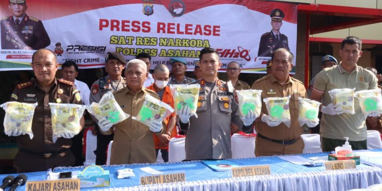 TASLABNEWS, ASAHAN- Polres Asahan menggagalkan penyelundupan 50 kilogram sabu dan mengamankan satu orang tersangka narkoba.