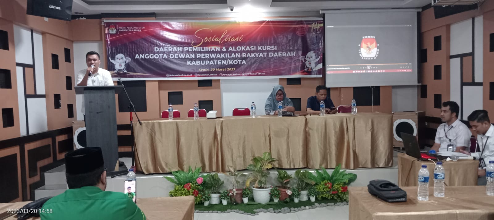 Hadir dalam kegiatan sosialisasi, Ketua KPU KABUPATEN Asahan Dayat, seluruh utusan partai politik, organisasi kemahasiswaan organisasi, tokoh agama dan tokoh masyarakat, organisasi kewartawanan seperti IWO, PWI, IJTI, SMSI dan JMSI.