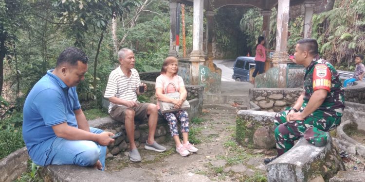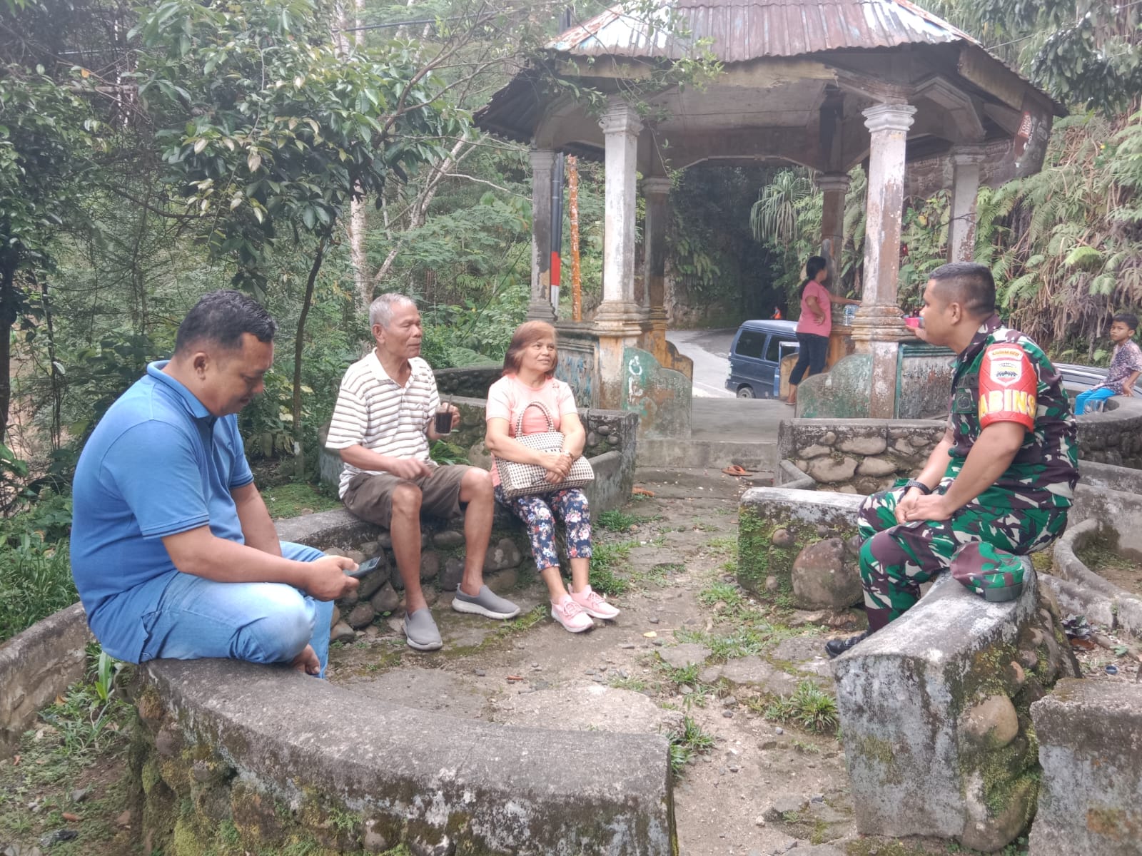 Babinsa Koramil 02/Sorkam, Serda Benni Sitompul membangun keakraban dan sinergitas dengan warga, di Jalan Lintas Sibolga- Tarutung Desa Simaninggir, Tapteng.