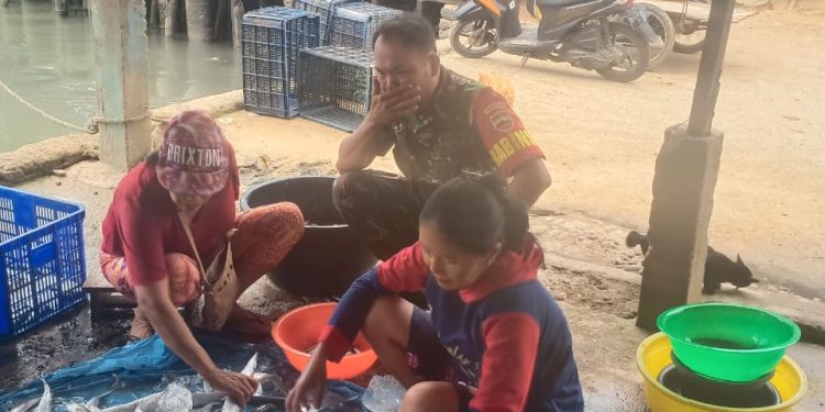Babinsa Koramil 06/Kota, Serda Boyke Hutabarat mengecek perkembangan ketersediaan dan harga ikan di Tangkahan, yang berlokasi di Kelurahan Aek Habil, Kota Sibolga.
